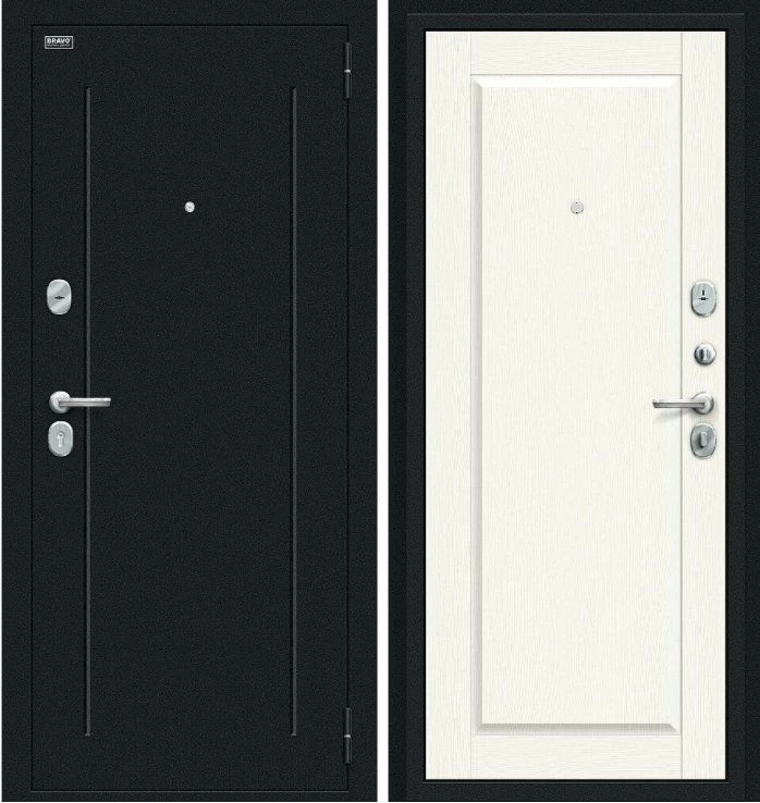 Надежная входная Дверь Браво Сьют Kale Букле черное White Wood премиум класса по цене 38 437 руб. Большая толщина стали защитит от проникновения в ваш дом, квартиру или коттедж. Используется очень качественная фурнитура: замки, цилиндры, ручки, защелки. Покрытие и отделка двери изготовлено под внимательным контролем производителя. Дверь имеет долгий срок службы и гарантию.